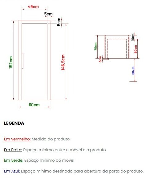 Medidas produto: A: 146,2 cm; L: 49 cm; P: 61,6 cm