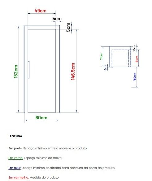 Medidas produto: A: 146,2 cm; L: 49 cm; P: 61,6 cm