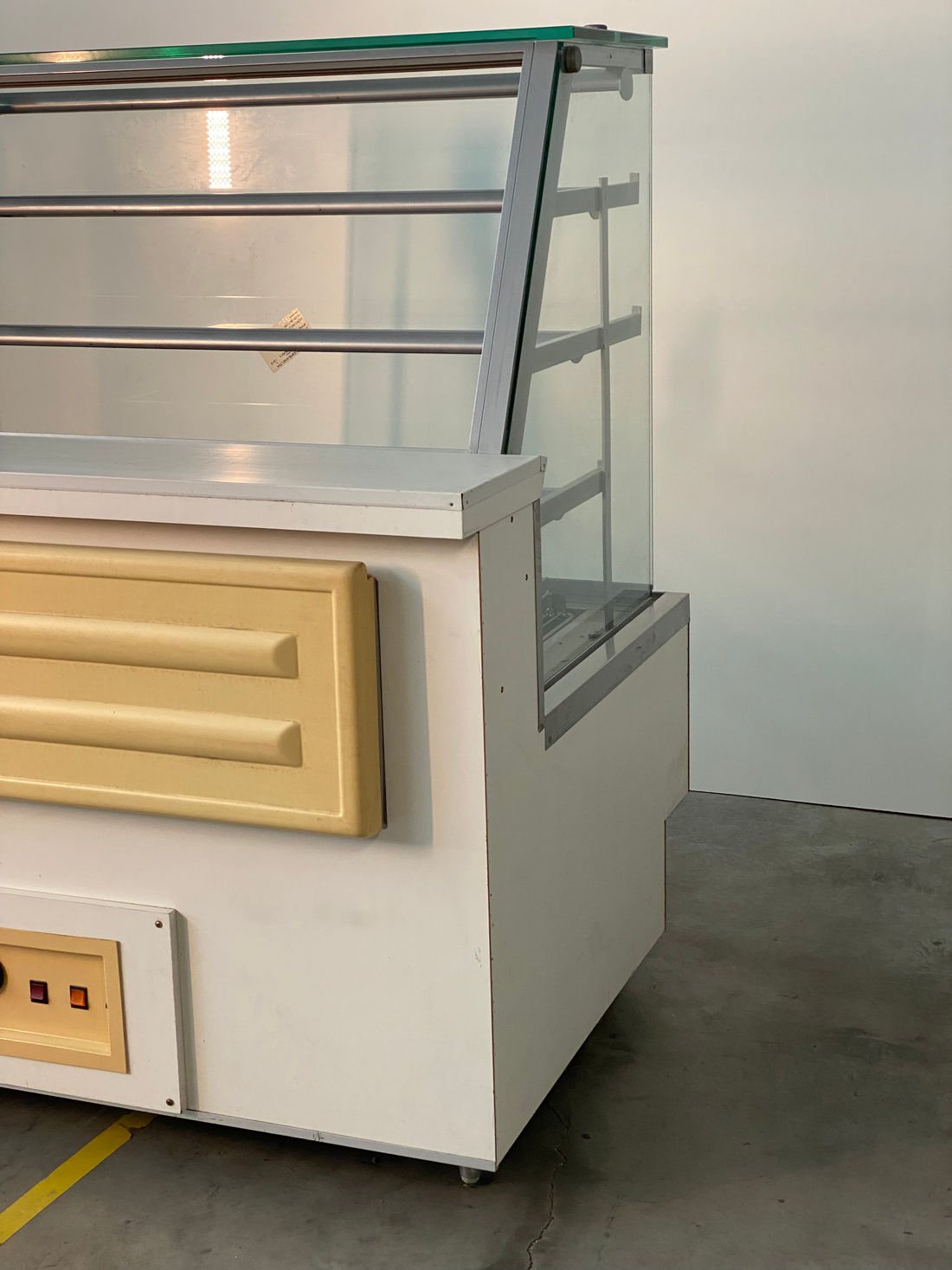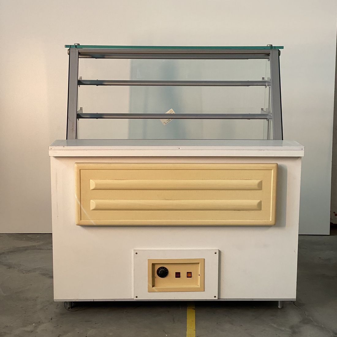 Composta por base e três prateleiras, é especial para exposição e conservação de salgados, tendo as dimensões de 1,27m x 0,97m x 1,38m (largura x profundidade x altura). Possui estrutura em compensado 15mm, revestimento frontal em MDF laminado decorativo liso, gaveta deslizante para abastecimento e exposição, permitindo 100% de visibilidade dos produtos, vidros frontais retos removíveis, vidros laterais de 8mm lapidados e polidos, três níveis de prateleiras metálicas com pintura eletrostática e suportes em alumínio, três calhas de luz com lâmpadas de baixa emissividade, com proteção de acrílico 3mm e área para fixação de preços. Equipada com resistência e termostato para controle da temperatura.
