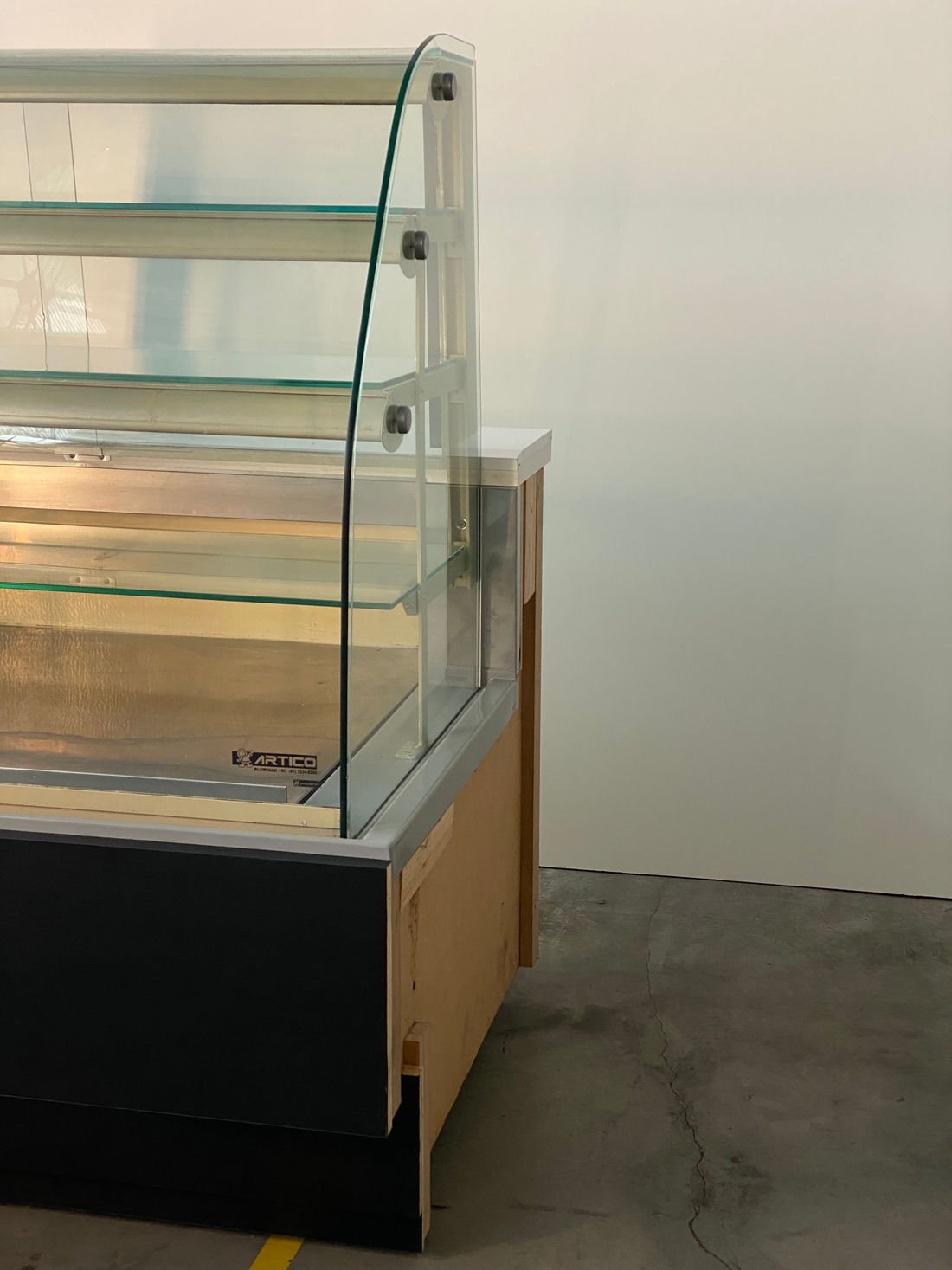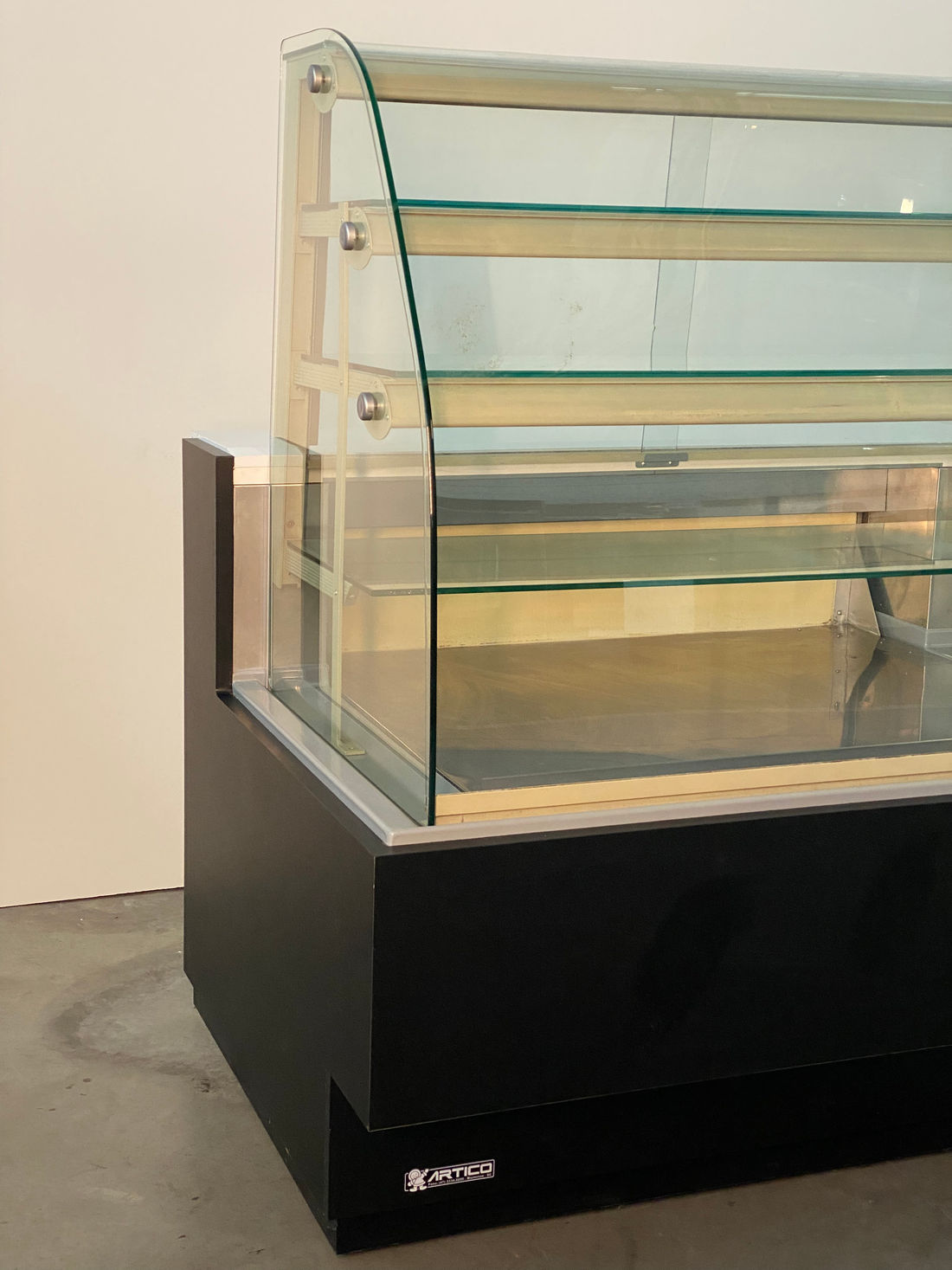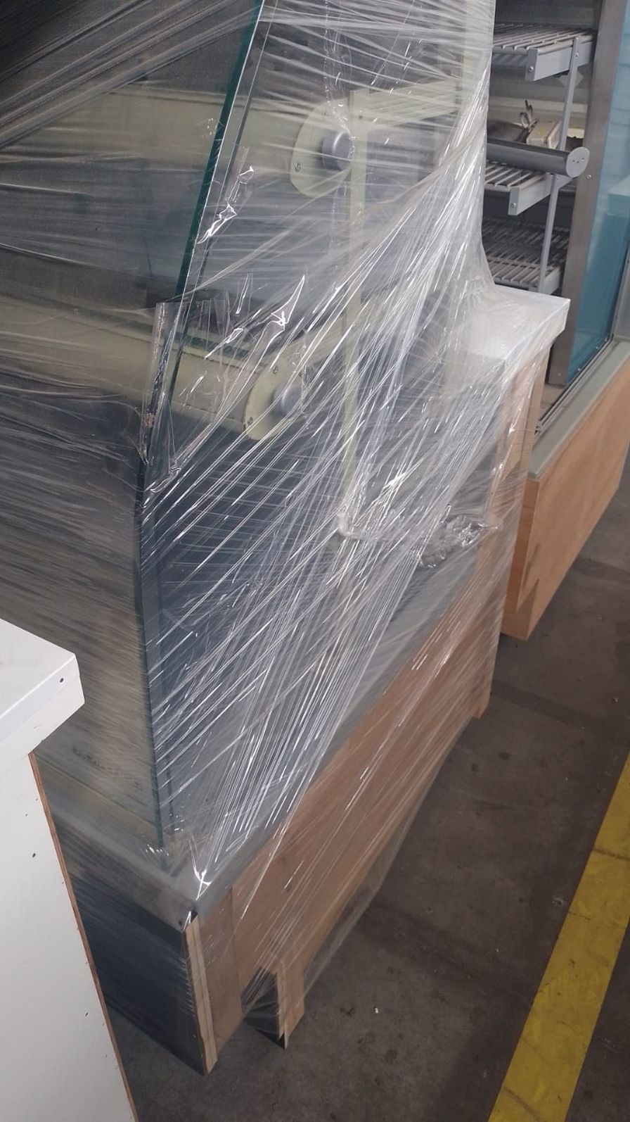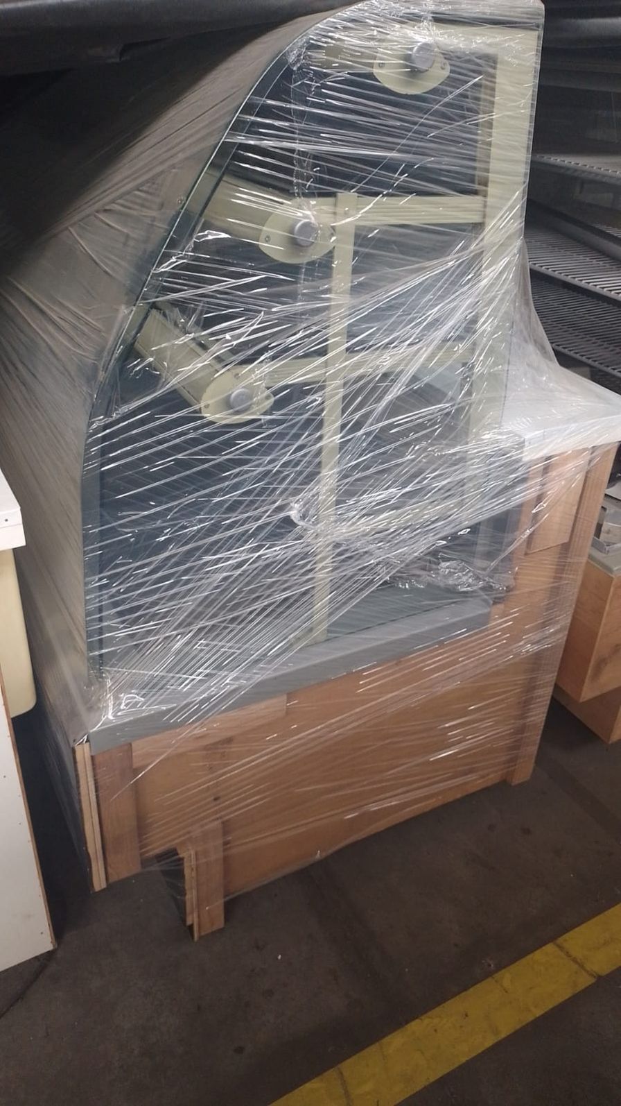 Composta por base e três prateleiras (NEUTRA) - especial para exposição e conservação de PRODUTOS NEUTROS, medindo 1,27 x 0,97 x 1,38m de altura, possui estrutura de chapa kromma pre pintada, revestimento frontal em laminado decorativo liso, vidro frontal curvo móvel e removível, três níveis de prateleiras com perfis de alumínio prateado, GAVETA DESLIZANTE PARA ABASTECIMENTO E EXPOSIÇÃO, COM VISIBILIDADE DE 100% DOS PRODUTOS, três calhas de luz de LED com proteção de acrílico 3mm e área para fixação de preços, vidros laterais lapidados e polidos com 8 mm.